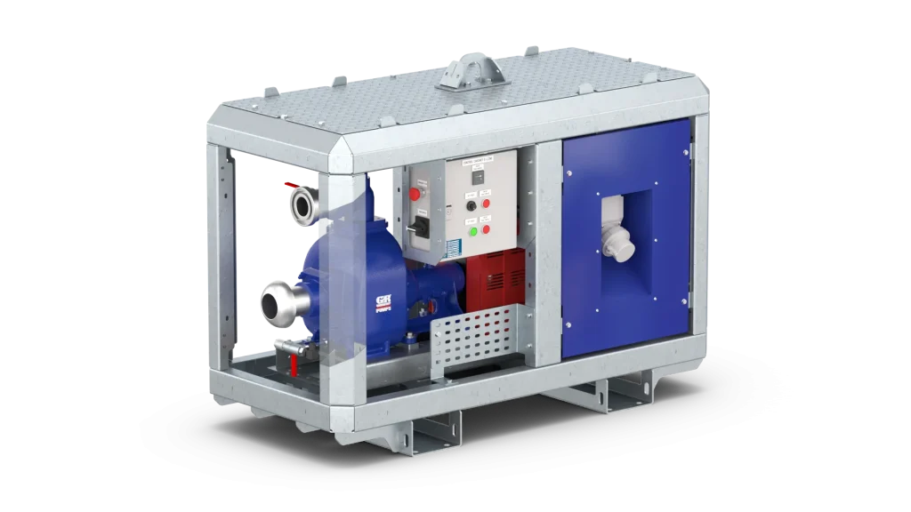 Electric driven self-priming centrifugal pump set for clean, dirty, and sewage water in demanding environments.