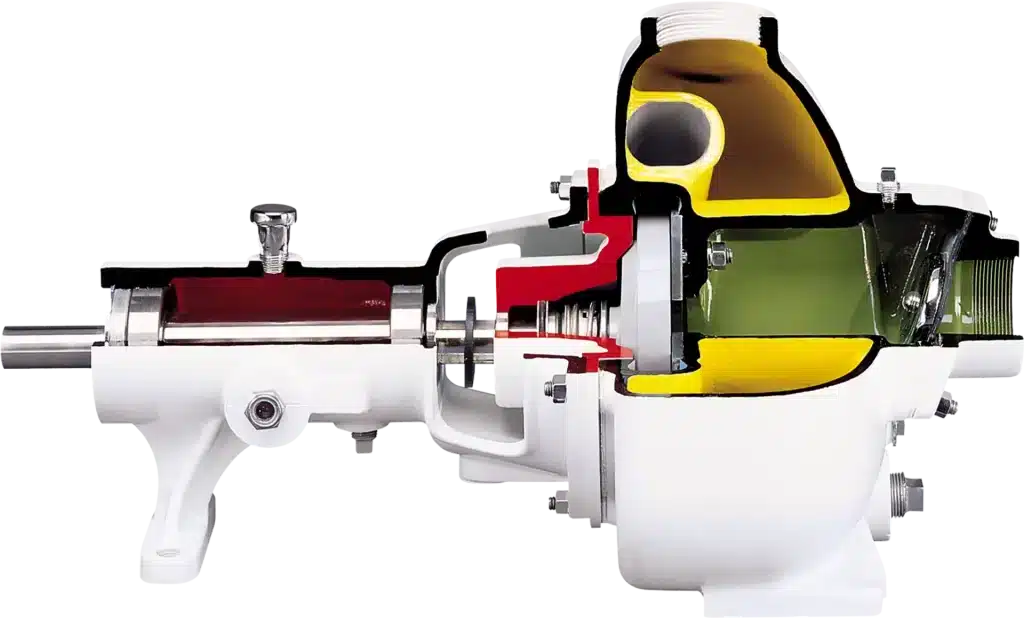 Liquid enters directly into the impeller eye, ensuring smooth flow with minimal turbulence. A suction check valve prevents backflow when the pump shuts off.
